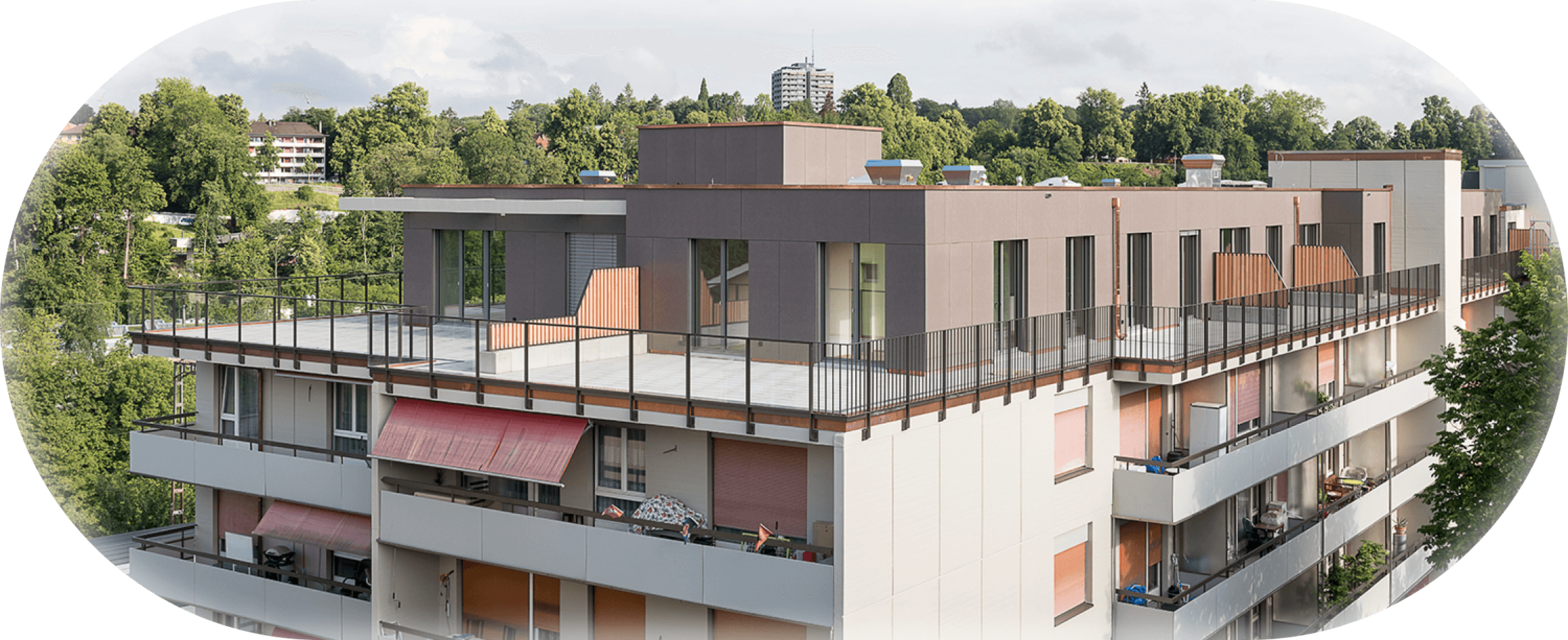Umnutzung Wellnessanlage mit kompletter Dachsanierung in 6 stilvolle 3.5 Zimmer-Attikawohnungen in der Lorraine am Randweg 7 und 9 in 3013 Bern. Das Mietobjekt ist im Gebäude des renommierten GYM FIT CLUB BERN AG. Durch die zentrale Lage zu Fuss vom Hauptbahnhof Bern in 8 Minuten erreichbar und somit ein beliebter Standort. Dank einem geschickten Umbaukonzept konnten die Wohnungen rasch vermietet werden. Begleitung in Konzeptions-, Planungs- und Bauphase sowie Erstvermietung/Weitervermietung
